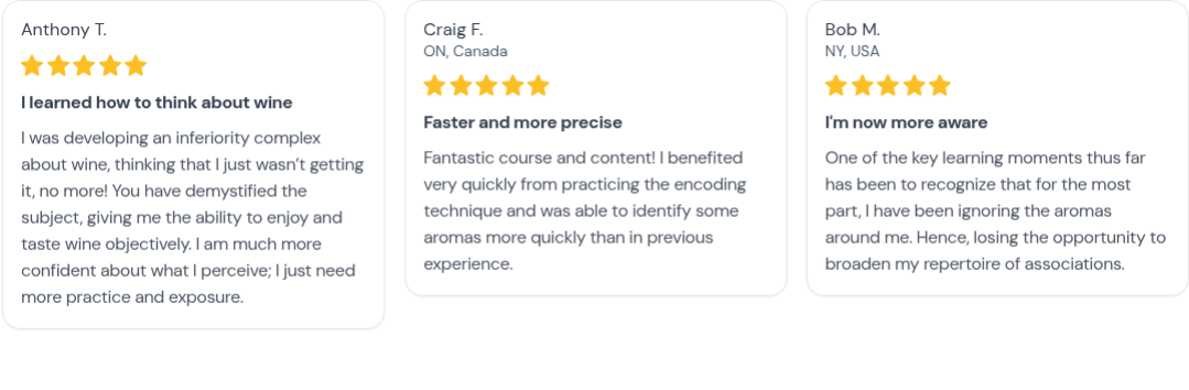 That’s why I've developed a path designed to help you meet your goals, no matter how much time you wish to dedicate to your wine sensory education.
